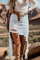 Stay on trend this season in our new unusual, slim fit skirt. We especially love the solid color fabric and think this piece will be a new favorite in your closet!
