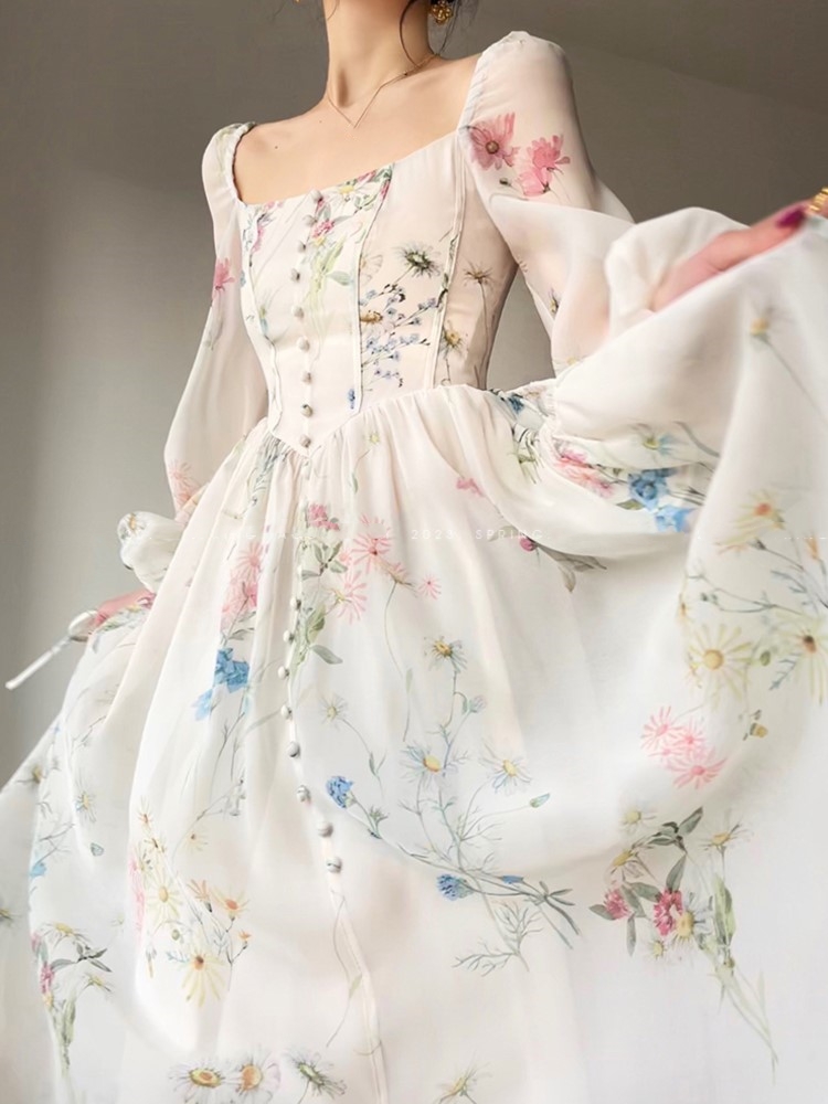 - Neckline: Square Collar